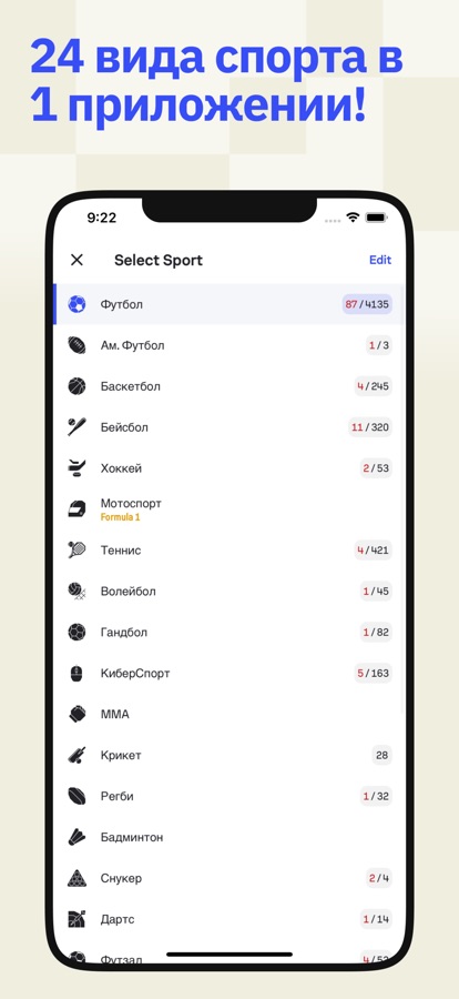 и другие виды спорта, которые мы охватываем – Бейсбол, крикет, регби, дартс, снукер, мини-футбол, бадминтон, австралийский футбол, пляжный волейбол, велоспорт с мячом.