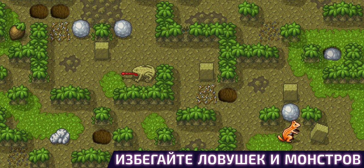 Вас ждёт пиксельная увлекательная игра бегалка — бродилка по лесным лабиринтам по клеткам. Белка собирает орехи и семечки, а Вы проходите многие уровни. Ловушки, ямы и опасные животные: ёжики и лягушки, а также муравьи, жуки и скорпионы ждут!