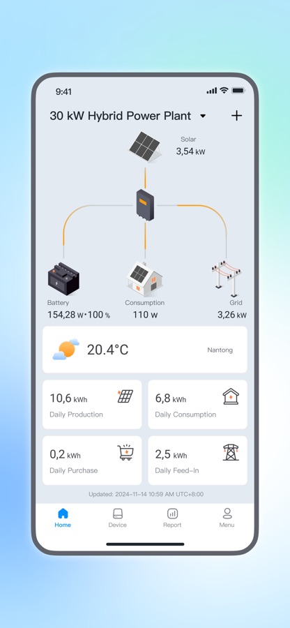 Будь то фотоэлектрическая станция на крыше, балконная фотоэлектрическая станция или система хранения энергии, приложение обеспечивает индивидуальный мониторинг для различных сценариев.