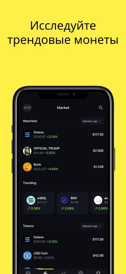 Исследуйте тренды и открывайте для себя новые инвестиционные возможности в мире Web3 и DeFi. Будьте на шаг впереди используя списки избранного и данные в реальном времени. Токены, свайпы и многое другое — будьте в курсе и готовы к доходу.