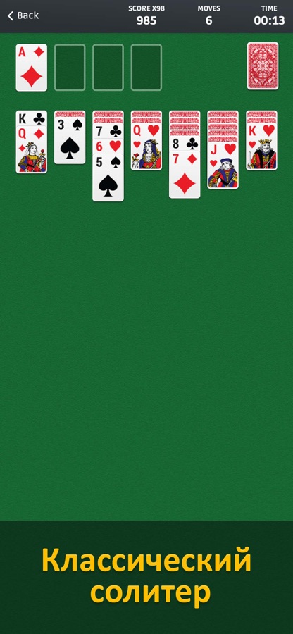 Классика жанра — игра в пасьянс — Solitaire, также известная под названием «Клондайк», теперь доступна для iPhone, iPod и iPad!