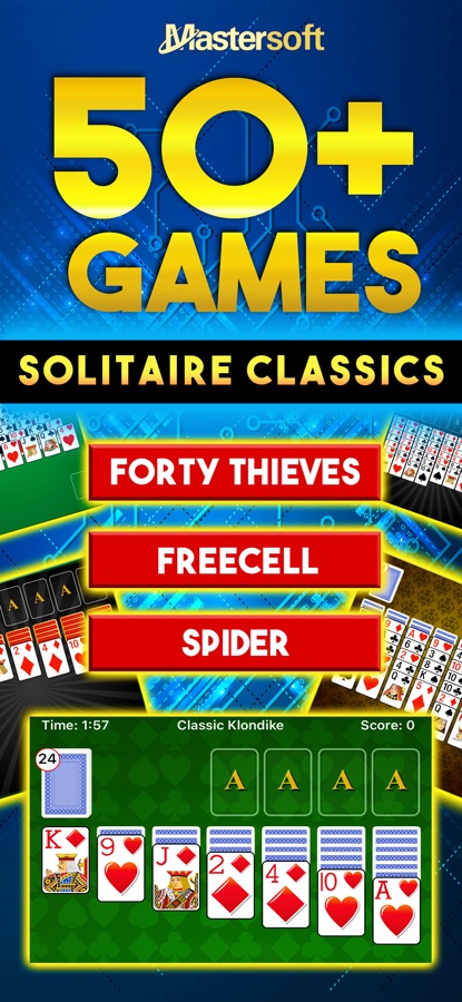 Теперь включает в себя 50 различных пасьянсов! Сорок воров, канфилд, паук, трипики, пирамида, клондайк, свободная ячейка и многое другое…