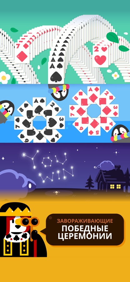 Игра, которую любят все. Доступна без интернета! Складывайте пасьянсы, чтобы зарабатывать монеты. Открывайте чудо-ящики, чтобы получить новые колоды, украшения и целые победные парады в вашу честь!