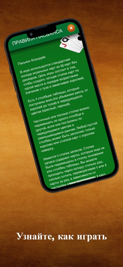 — Правила Пасьянса в приложении для начинающих игроков.