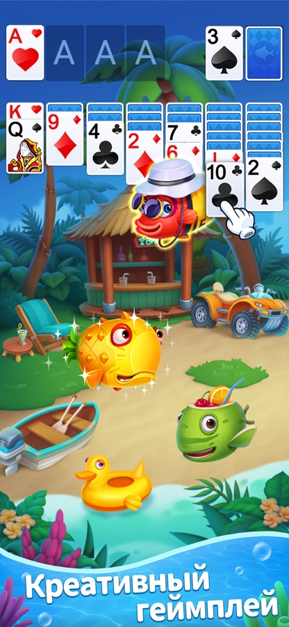 К классическому пасьянсу (также известному под названием «Косынка») мы добавили креативный мир аквариума с различными морскими рыбами.