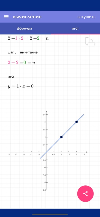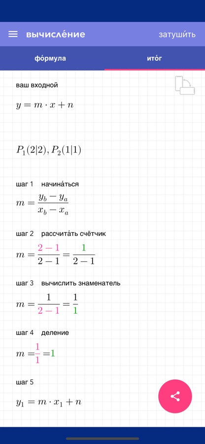 Сделай домашнее задание сразу. Готовься к экзаменам без стресса. Бесплатные, полные пошаговые решения. Введи свои значения и вычисляй линейные уравнения по наклону, пересечению или двум точкам – с графиком.