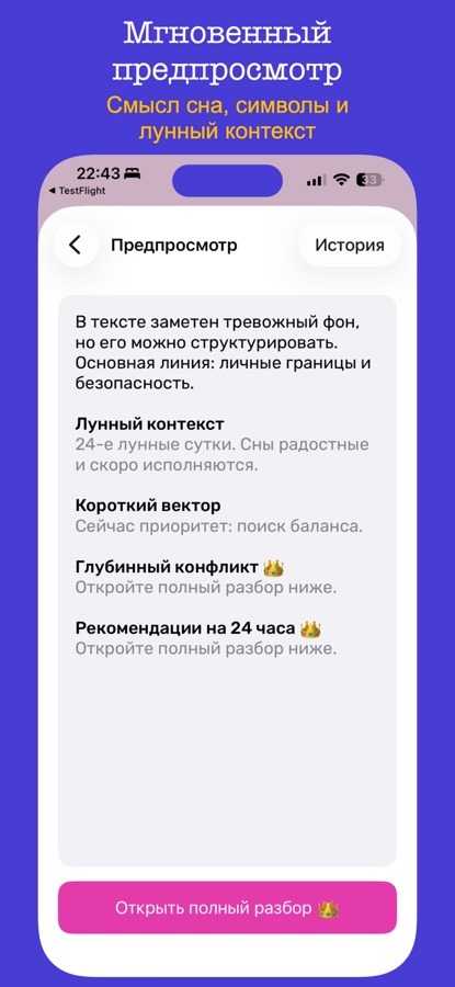 Скачайте приложение и погрузитесь в мир сновидений, знаков и символов — чтобы лучше понимать себя и свои сны каждый день.