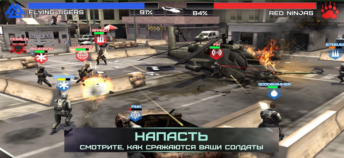 * Открывайте новых солдат с улучшенным оружием и умениями, чтобы повысить боевой рейтинг команды.