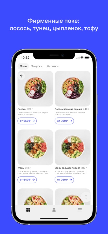 Проект про здоровый лайфстайл, свободу и вдохновение. В мобильном приложении меню с фирменными поке, лимонадами, а также полезными закусками и супами.