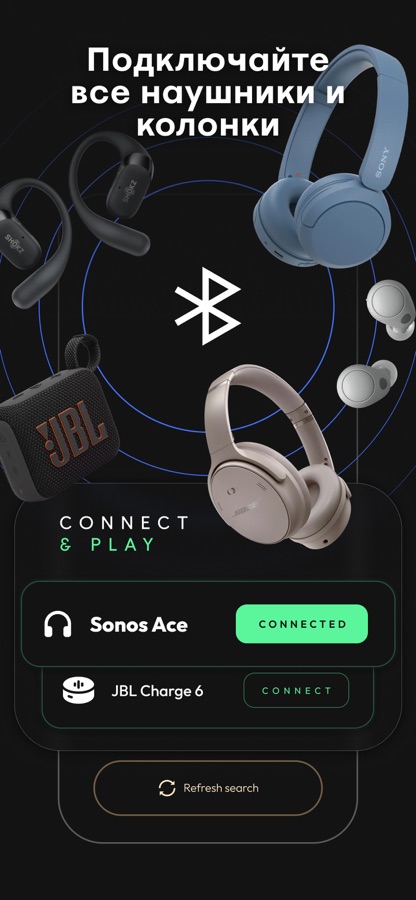 Оптимизируйте звук для любой модели наушников или колонок — включая Bose, Sony, JBL и Samsung — с автоматическими пресетами или ручной настройкой.