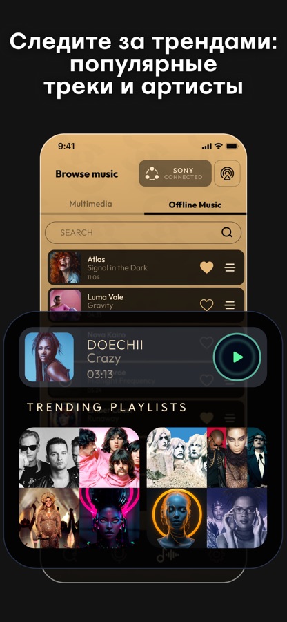 Просматривайте популярные треки и последние релизы. Легко добавляйте избранное в плейлисты и наслаждайтесь свежим звучанием каждый день.