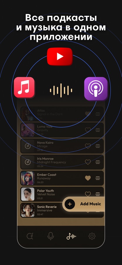 ◆ Прямая интеграция с YouTube для распознанных и локальных треков