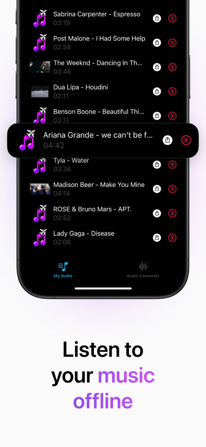 ◦ No internet or Wi-Fi needed! All music plays offline and is saved to your device