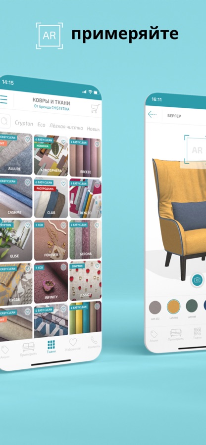 В нашем новом приложении, в обширном каталоге обивок для мягкой мебели, вы легко найдете, сможете найти, примерить и купить следующую продукцию: