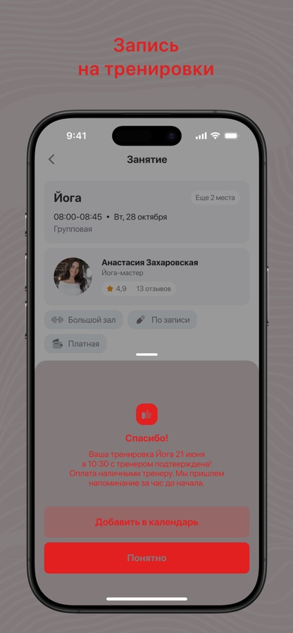 Мобильное приложение для клиентов фитнес-клубов и спортивных студий