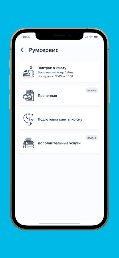 -заказ еды из бара и завтрака в каюту;