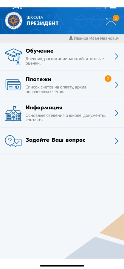Мобильное приложение «ШКОЛЫ «ПРЕЗИДЕНТ» позволяет родителю: