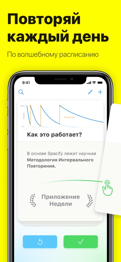 2. Приложение показывает их в момент самого эффективного запоминания. Интервалы между показами увеличиваются каждый раз.