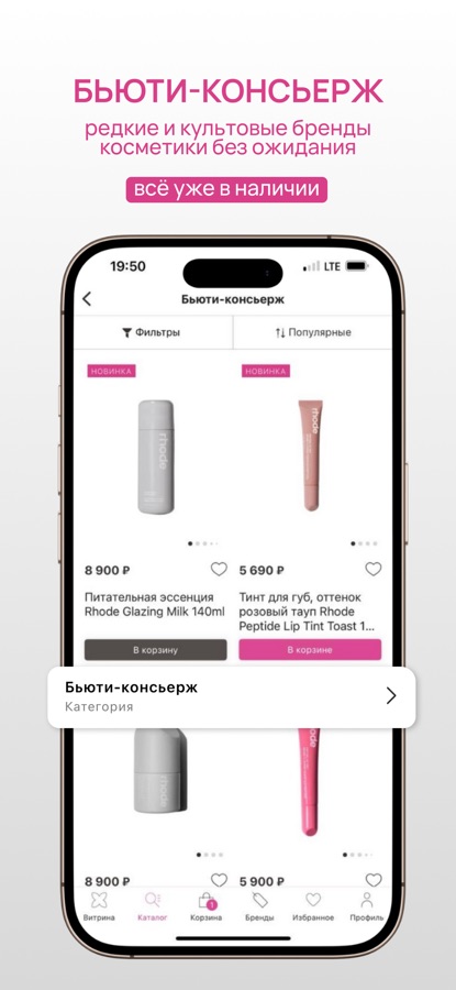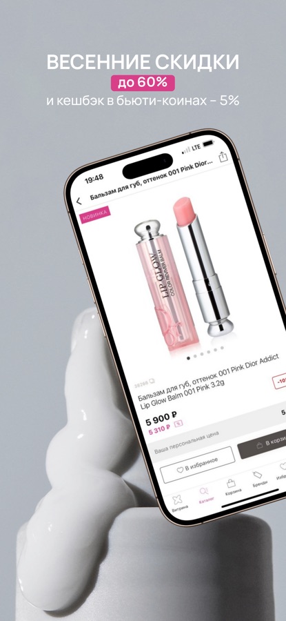 Широкий ассортимент уходовых средств для лица, тела и волос, декоративной косметики, бьюти-гаджетов и товаров для дома, а также лимитированные бьюти-боксы. Вы можете заказать желаемый продукт не выходя из дома, ведь теперь весь ассортимент товаров у вас в смартфоне.