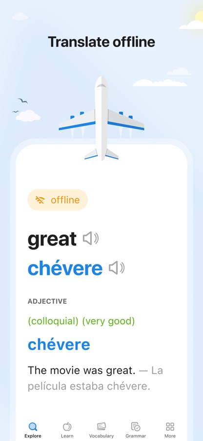 — SpanishDictionary.com Premium: Take your learning to the next level with offline vocabulary quizzes, no ads, and downloadable Cheat Sheets and Phrasebooks.