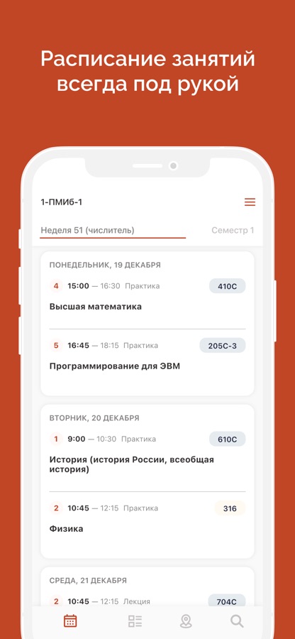 — Расписание – расписание на неделю и на семестр, учебные графики и мероприятия