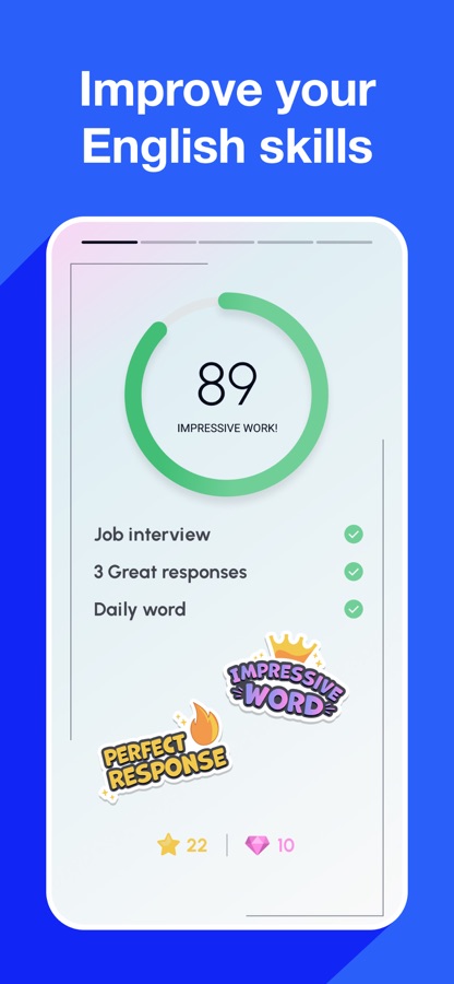 * Отслеживайте свои успехи и ежедневно улучшайте свой результат в беглости английского. Совершенствуйте произношение и акцент, достигая своих еженедельных целей.