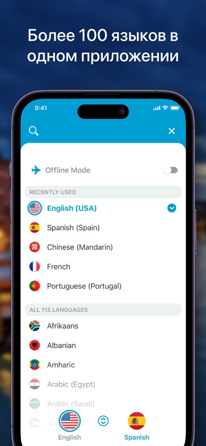 • Режим снимков: просто сфотографируй любой текст или объект, который ты хочешь перевести!