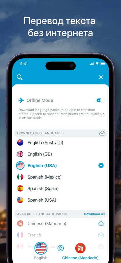 Для использования приложения необходимо соединение с интернетом. Для работы в автономном режиме вам потребуется загрузить на устройство языковые пакеты.