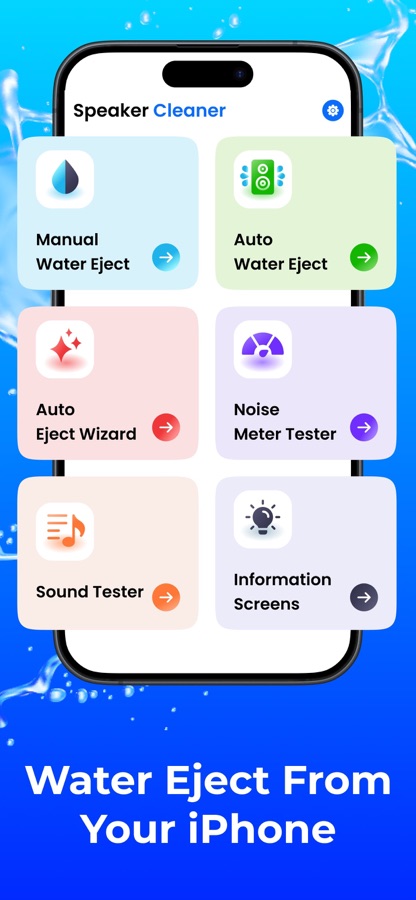 Speaker Cleaner – Water Eject comes with various options like manual water eject, auto water eject, auto eject wizard, noise meter tester, sound tester, and information screen. Now you remove dust and water from the speaker using the manual and auto-water eject methods. The Auto-Water Wizard plays a specific sound that vibrates at a certain frequency to help clear out any dirt or water trapped inside the speaker. Get a noise meter and check the sound levels. Test sound allows you to check your device’s speaker sounds easily and also get the information screen to find useful information regarding your device.