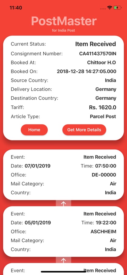Have a great experience with PostMaster which simplifies your post tracking experience. The only app that doesn’t redirect you service provider’s official website but gets back the results in seconds with your tracking ID. Postal experience made easier for the very first time in India for any postal service irrespective of the type or company that deals with your postal services.