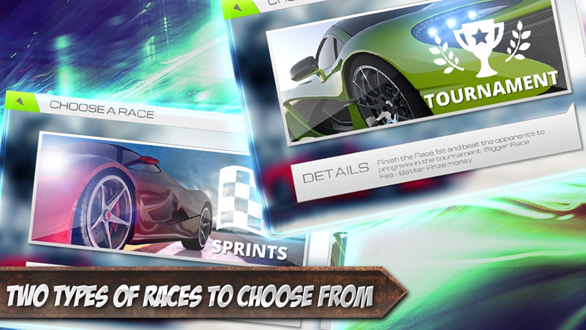 The Game consists of 15 different Tournament races and Sprint Rounds, offering you a variety of challenges. The more you win, the more you earn. Outpace your opponents and enhance your racing skills. You can also brag about your advanced driving skills via the Leader boards through Game Center.