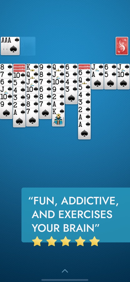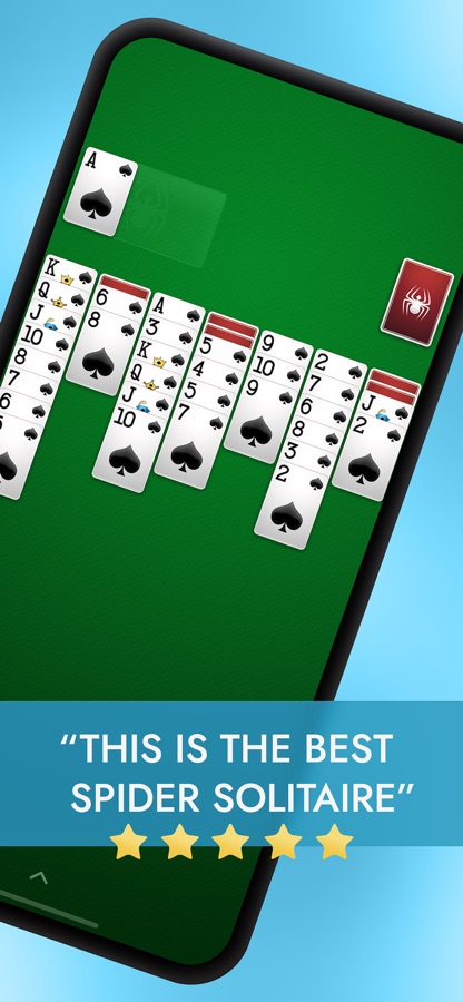 Jump into games with crisp, easy to read cards and smooth animations for a Spider Solitaire experience like no other. Enhance your gameplay experience with simple tap or drag controls and soothing sounds that make each Solitaire game a joy to play in either portrait or landscape mode.