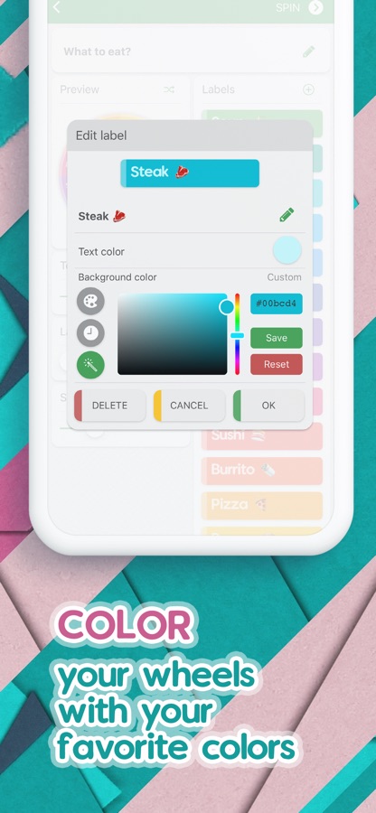 Пишите все, что хотите, на колесе и создавайте уникальные способы выбора случайных вариантов или имен победителей, создавайте свои собственные игры-спиннеры, которые намного веселее, чем просто подбрасывание монеты или создавайте неограниченное количество колес удачи, которые помогут вам ответить на такие вопросы, как «Чем мне заняться?», «Где мне поесть?», «Куда сходить?». Принимайте решения в увлекательной игровой форме!