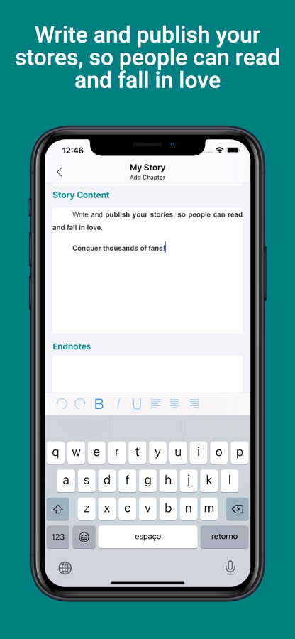 Write and publish your stories, so people can read them and fall in love with them. Conquer thousands of fans!