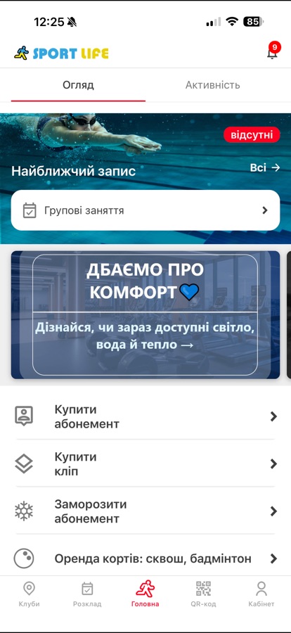 — Купувати додаткові послуги: призупинення абонементу, рушники, одноразові відвідування зон