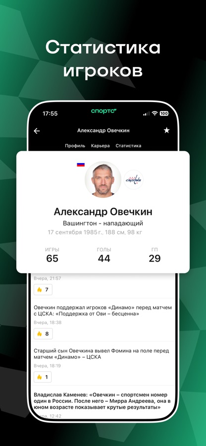 • Персональная лента, которая подстраивается под ваши любимые команды, турниры и виды спорта.