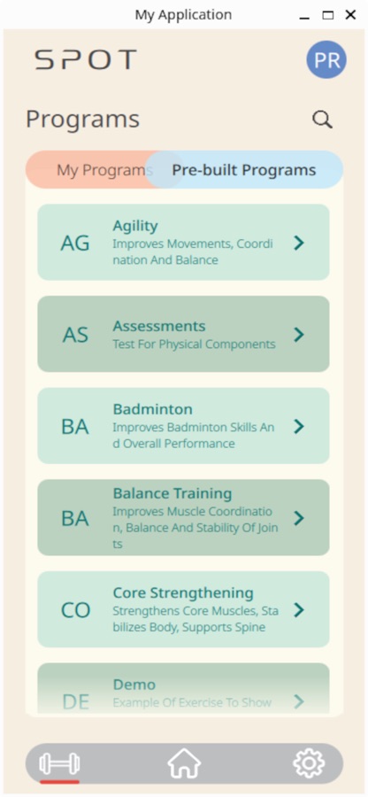 Plan physiotherapy/fitness/agility training programs, execute with SPOT sensor with engaging visual/audio cues that measures every movement, track historical performance and generate reports to get progress insights.