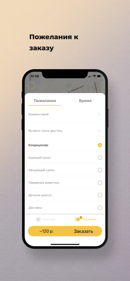 Пожелания к заказу — оставляйте пожелания для комфортной поездки на автомобиле от «СПРИНТ-заказ такси». В меню ”Пожелания” вы можете выбрать: кондиционер, курящий салон, некурящий салон, перевозку животных.