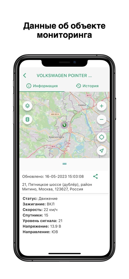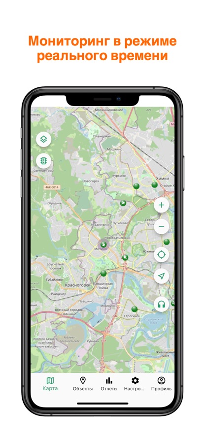 Приложение позволяет контролировать местоположение наблюдаемых объектов. Вся информация о перемещении объектов мониторинга отображается на интерактивной карте в режиме реального времени.