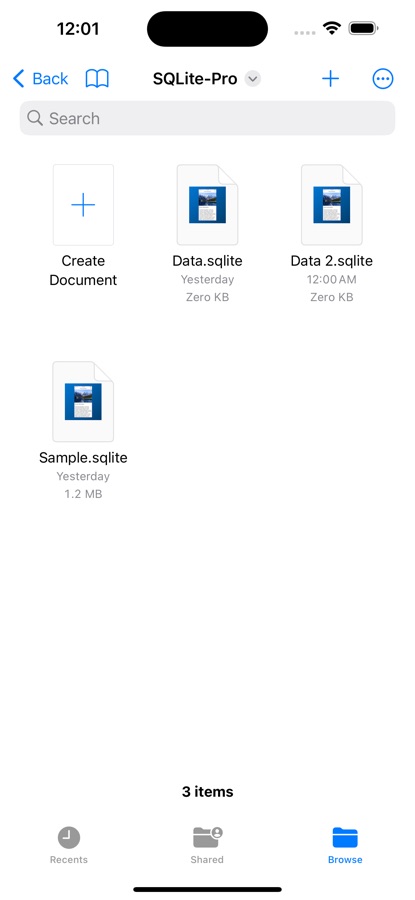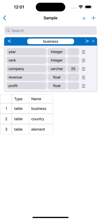The app combines the power and flexibility of SQLite with an intuitive graphical interface for tapping to view all tables and rows. You can also tap on the search icon to enter advanced SQL queries and get results immediately.