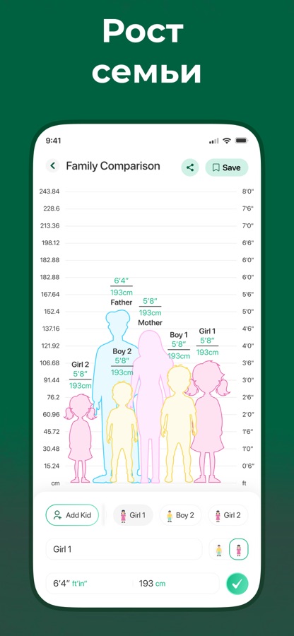 Переключайтесь между сантиметрами, футами и метрами для удобного и точного сравнения роста.
