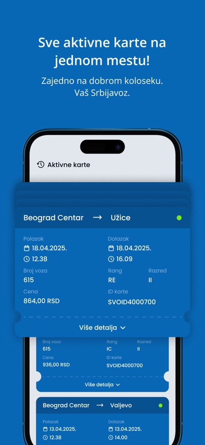 Srbijavoz mobilna aplikacija omogućava vam da uz nekoliko koraka brzo i lako kupite online vozne i pretplatne karte za jedno ili oba smera, uz mogućnost plaćanja platnim karticama.