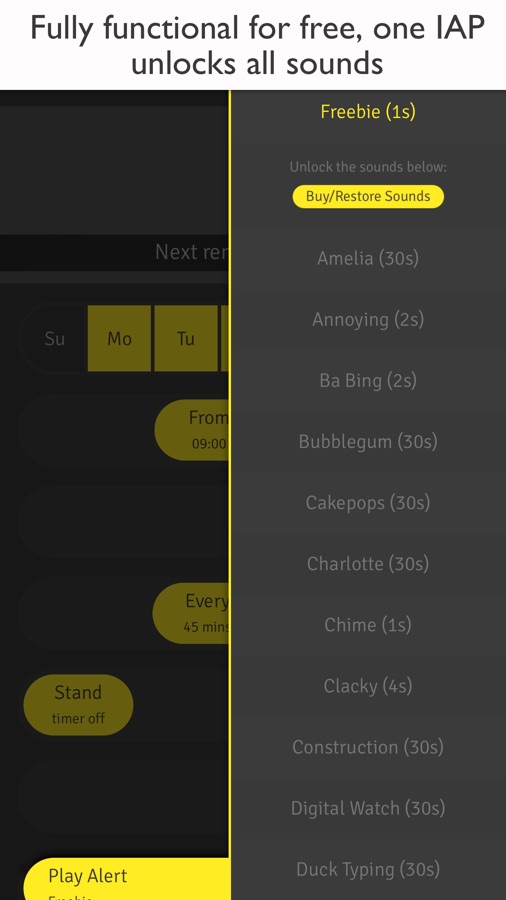 • Free and fully functional! It comes with one alarm tone, and one In-App Purchase unlocks the rest.