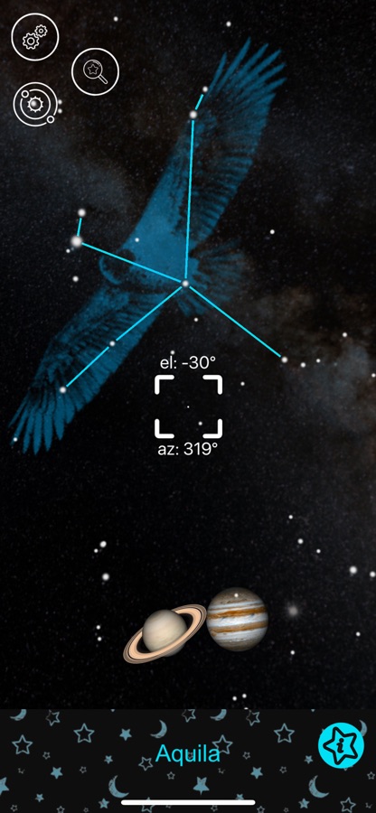 • Доступны дополнительные 74 созвездия (по умолчанию открыты только созвездия зодиак + Большая и Малая медведицы)