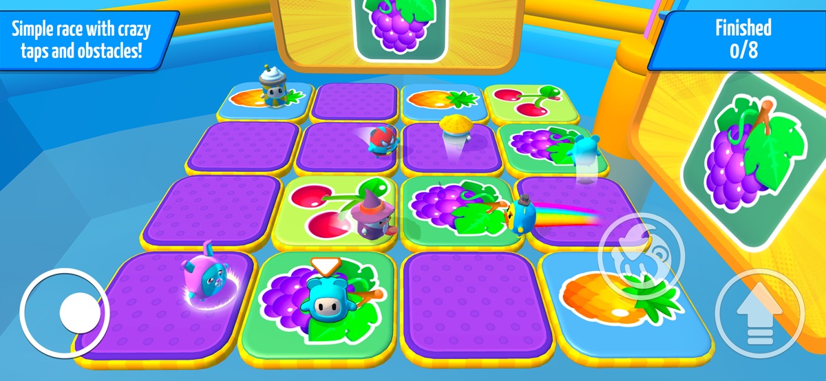Игра состоит из нескольких раундов, каждый из которых — это забег по опасной трассе, где тебе придется уклоняться от разнообразных ловушек и стараться обогнать других игроков!