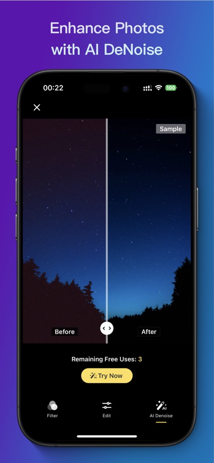 — City Mode: For city night scenes, the app comes with AI to solve the challenges of urban lighting and insufficient light to capture dark details, enabling you to capture stunning night shots with ease.