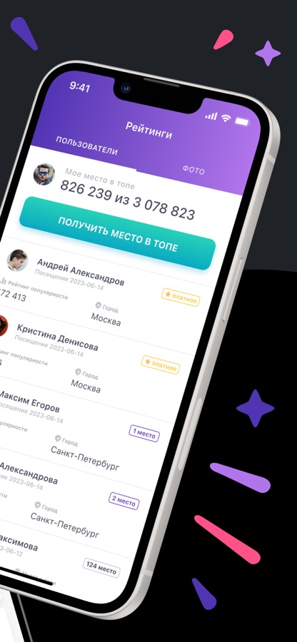 ◉ Рейтинг пользователей приложения и возможность попасть на первое место в топе.