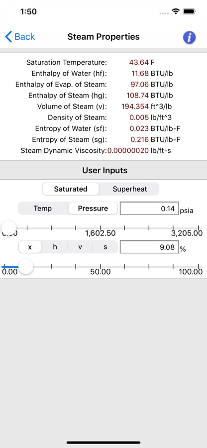 4. This app is not just a steam-table lookup app. It is powered by the actual steam-table formulas, so you can calculate for all ranges of input values, not just those published in steam table books.