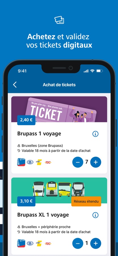 — L’app vous donne le choix : Brupass ou Brupass XL, 1 ou 10 voyages. Si vous prenez de temps en temps les transports en commun, optez pour un ticket 10 voyages à un prix avantageux. De quoi faire des économies !