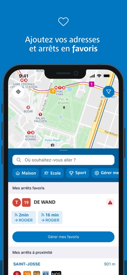 — Enregistrez vos lignes et arrêts favoris et retrouvez toujours votre chemin dans l’app et à Bruxelles.
